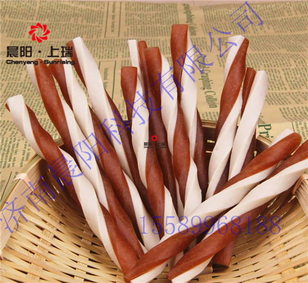 為滿足這一市場需求,晨陽人自公司成立之初,就加大力度投入技術(shù)研究,經(jīng)過十多年不斷摸索和實(shí)踐,掌握了成熟的制作狗咬膠的經(jīng)驗(yàn)和方法。 采用科學(xué)配置的淀粉為原料,使用單螺桿擠壓機(jī)擠壓出客戶需求的各種形狀的狗咬膠,通過調(diào)整原料、溫度和水分等工藝參數(shù),生產(chǎn)出來的產(chǎn)品具有形狀新穎、口感獨(dú)特、營養(yǎng)豐富、組織細(xì)膩等特點(diǎn)。