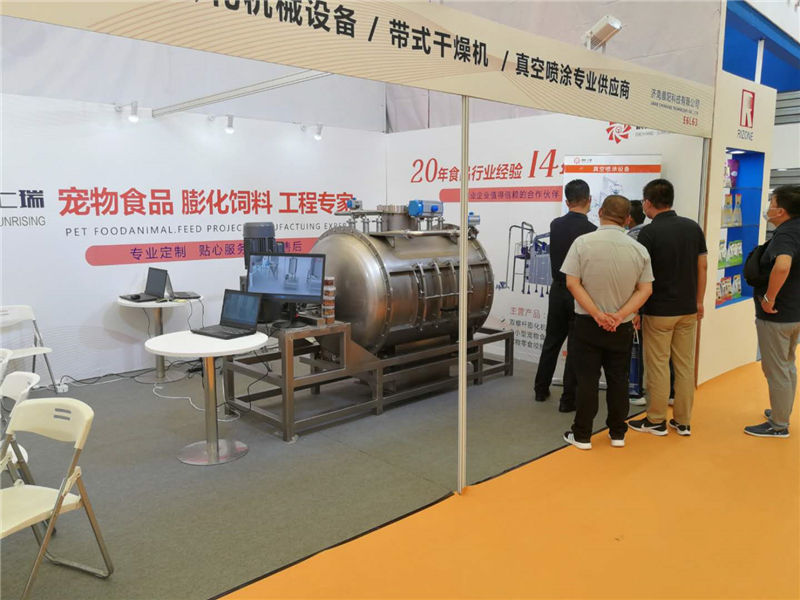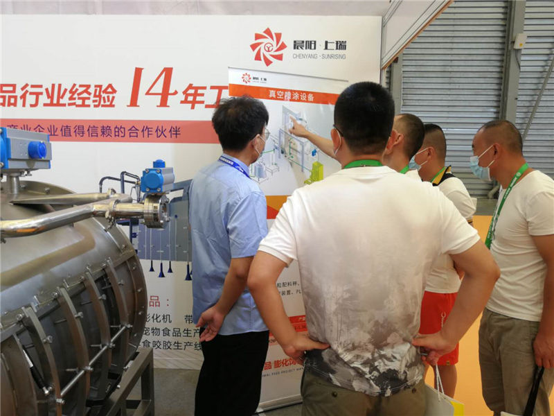 濟(jì)南晨陽公司作為寵物食品設(shè)備供應(yīng)商,以連續(xù)數(shù)界參加亞寵展覽會(huì),本次展覽會(huì)我們展示新開發(fā)的真空噴涂設(shè)備,本噴涂設(shè)備主要應(yīng)用于時(shí)產(chǎn)2.5噸以高能寵物糧生產(chǎn)線的高油脂產(chǎn)品加工,填補(bǔ)了國內(nèi)無小型自動(dòng)真空噴涂設(shè)備的空白,該產(chǎn)品一經(jīng)亮相,在展會(huì)就有大批客戶不斷咨詢該產(chǎn)品的技術(shù)問題。