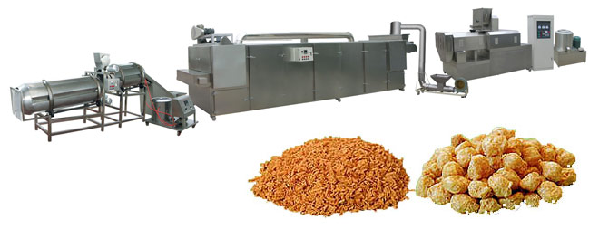 (3)拆絲:將脫水后的拉絲蛋白打散拆絲。把復(fù)水脫水后的拉絲蛋白置于快速打漿機中(鈍刀,轉(zhuǎn)速約500~1000rpm),打漿約2~3分鐘即可。也可用轉(zhuǎn)速達300rpm以上的擂潰機、攪拌機拆絲?;蛘邔匕铏C反轉(zhuǎn)(刀背)運行1分鐘左右(切刀速度約500~1000rpm)?!±z蛋白產(chǎn)品具有極佳的結(jié)構(gòu)和真實肉質(zhì)纖維的組織,非常適合用于各類高級素食仿肉食品的加工,如素火腿、素雞、素魚、素漢堡、素?zé)峁?、素茶鵝、素牛排、素肉松等。產(chǎn)品本身亦具有良好的吸水性、保油性,經(jīng)過適當(dāng)?shù)募庸ぜ夹g(shù)后,是一種理想的高蛋白肉制品添加物,在肉制品應(yīng)用中,可達到增強肉感,降低成本,提高產(chǎn)品中的蛋白質(zhì)含量的目的。如應(yīng)用于肉糜腸類、西式火腿、肉丸類、重組排類(雞排、豬排等)、油炸雞塊、漢堡肉類餃子、包子、肉粽等速凍肉制品中;用于諸如仿肉牛肉干,重組牛肉粒,葷素肉松等休閑食品也是絕佳的選擇。拉絲蛋白產(chǎn)品復(fù)水即可調(diào)理制作菜肴或代替部分肉品使用,因此可直接供食堂、配餐公司、餐廳等選購。本品不僅操作方便,也倡導(dǎo)了健康營養(yǎng)的飲食新概念,同時可達到降低成本的效果(不到瘦肉成本的1/2),為一新潮流趨勢的食材選擇。