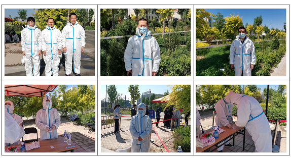 戰(zhàn)疫展勞模本色,艱難顯志愿精神。在勞動(dòng)節(jié)期間, 晨陽公司3名員工參與工業(yè)園區(qū)的志愿者防疫工作,集合進(jìn)行崗前培訓(xùn)。醫(yī)務(wù)工作者向大家講述了信息采集平臺(tái)的使用、防護(hù)的穿脫等基本操作和注意事項(xiàng),大家著裝完畢后就奔向各自的工作崗位,開始了緊張有序的工作。正午時(shí)分,艷陽高照,身著防護(hù)服的教職工志愿者們口干舌燥,衣衫也早已被汗水打濕,但是他們依然毫無怨言地堅(jiān)守著崗位,為確保工業(yè)園區(qū)員工有序地開展核酸檢測貢獻(xiàn)著自己的力量。