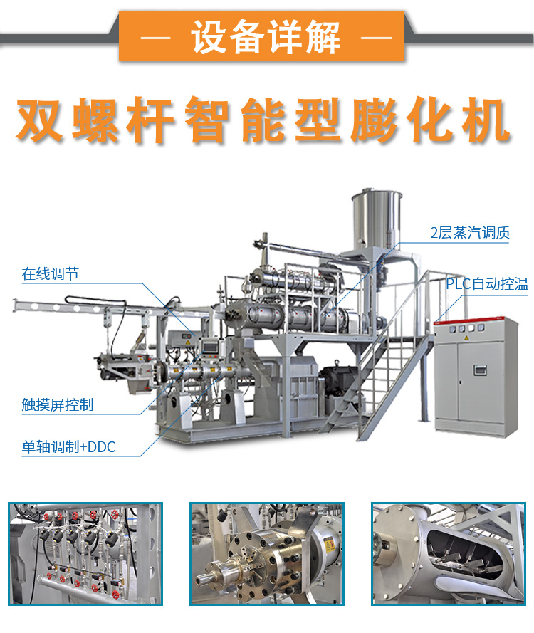 3. 膨化處理:經(jīng)過破碎與烘干的原料會被送入膨化機(jī)中,通過高溫高壓的處理,使原料膨化。這一步可以增加飼料的體積,提高其在水中的穩(wěn)定性和適口性。