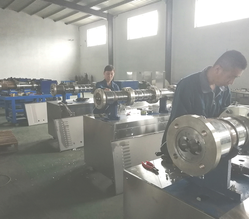(2)擠出系統(tǒng): 由螺桿,機(jī)筒,連接段組成; 螺桿為38crmoal材料,滲氮深度5mm,耐磨耐用,機(jī)筒為國標(biāo)45號(hào)鋼,與螺桿配合間隙控制在0.5mm以內(nèi)