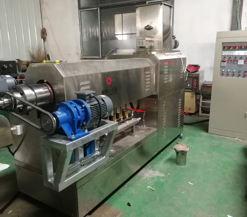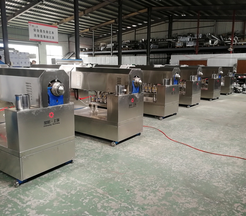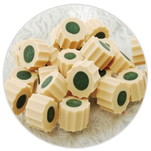 直接擠出型咬膠主要加工條狀、棒狀雙色咬膠,其形狀通過磨具擠壓后直接定型,通過切斷機切斷后達到要求的理想尺寸。其形狀根據產品要求開模,五角星、五棱、六棱、十字、狗骨頭,、雙色熊掌、五花肉等形狀等。