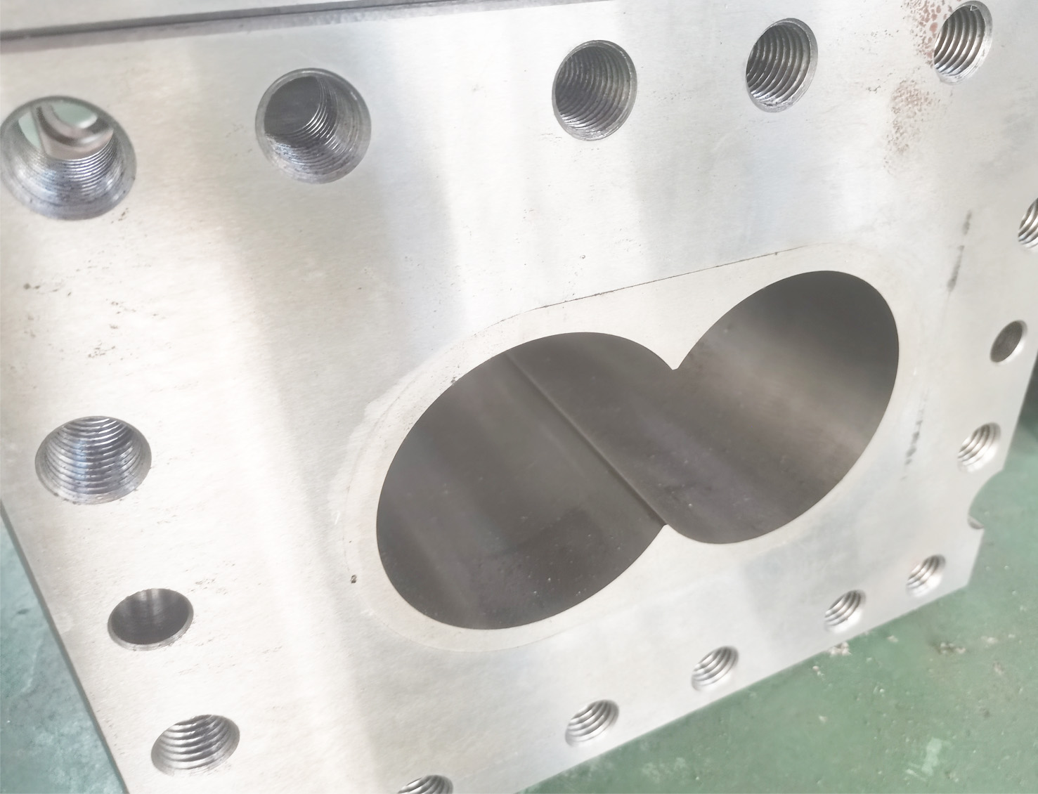 機(jī)筒:機(jī)筒為方形或圓形機(jī)筒,內(nèi)部鑲嵌合金鋼襯套,外層為45#材質(zhì),機(jī)筒回形水道冷卻