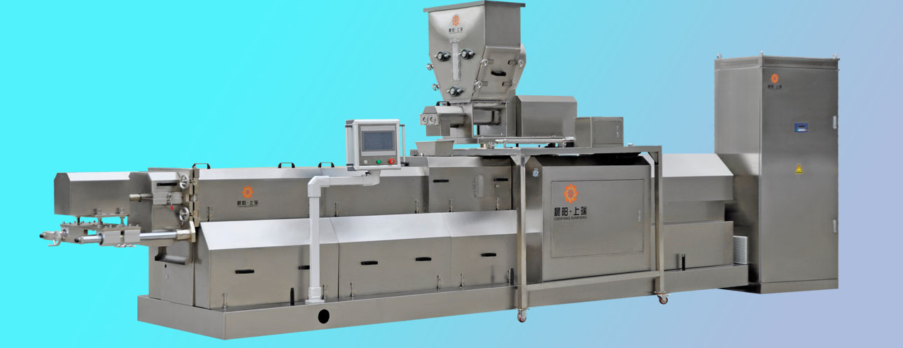 雙螺桿膨化機(jī)應(yīng)用領(lǐng)域涵蓋農(nóng)產(chǎn)品深加工早餐方便粥、營(yíng)養(yǎng)米、方便米飯、早餐谷物食品、休閑膨化食品、拉絲蛋白、變性淀粉、寵物食品、水產(chǎn)飼料等加工領(lǐng)域。